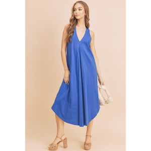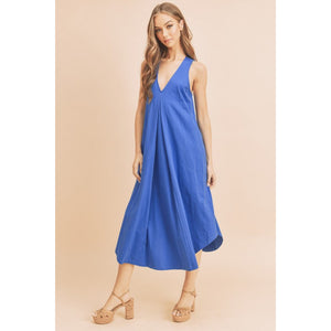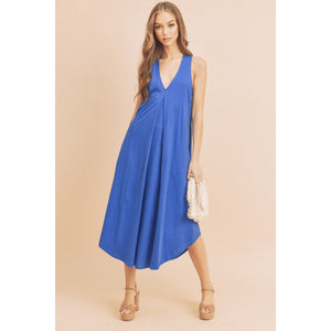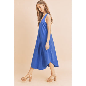 Aemi + Co Front Pleat Detail V-Neck Sleeveless Midi Dress