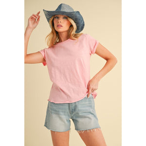 Aemi + Co Lettuce Edge Round Neck Short Sleeve T-Shirt