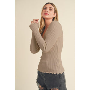 Aemi + Co Lettuce Hem Scoop Neck Long Sleeve Knit Top