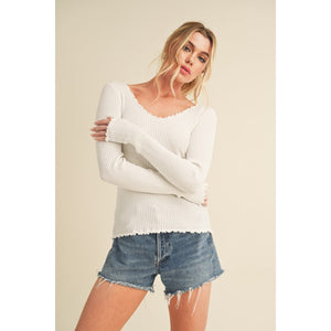 Aemi + Co Lettuce Hem Scoop Neck Long Sleeve Knit Top