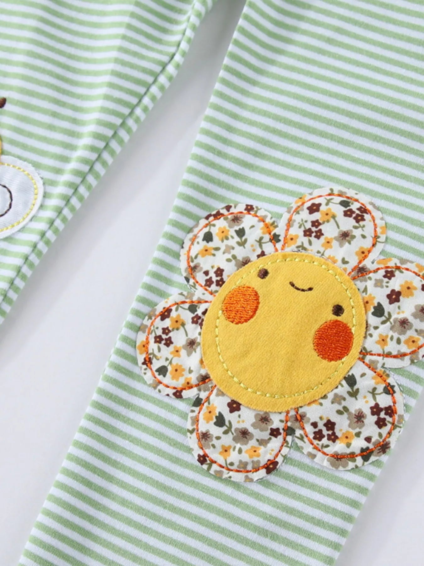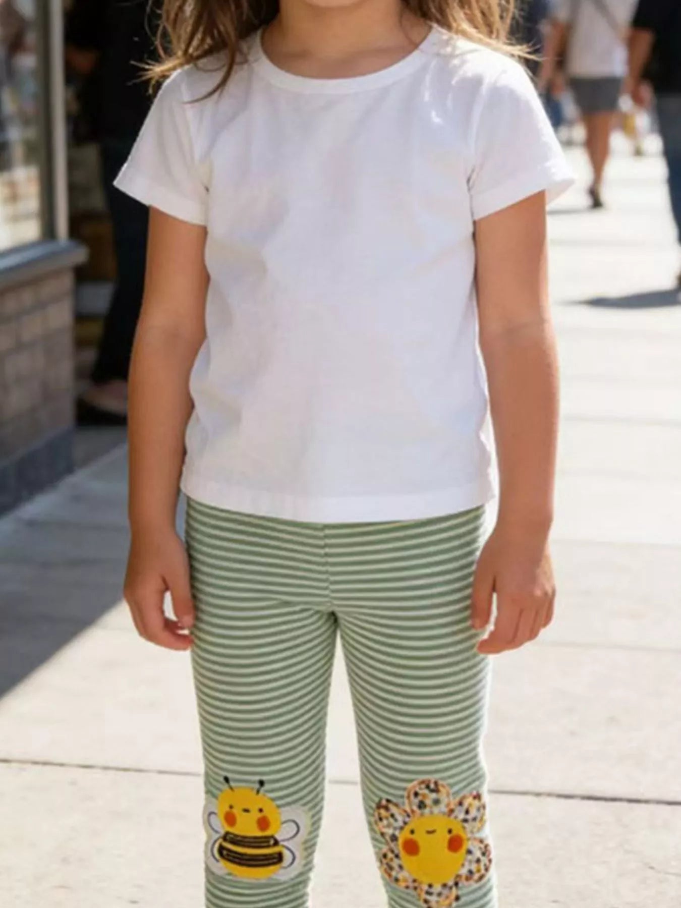 Children's Striped Bee Flower Appliqued Leggings
