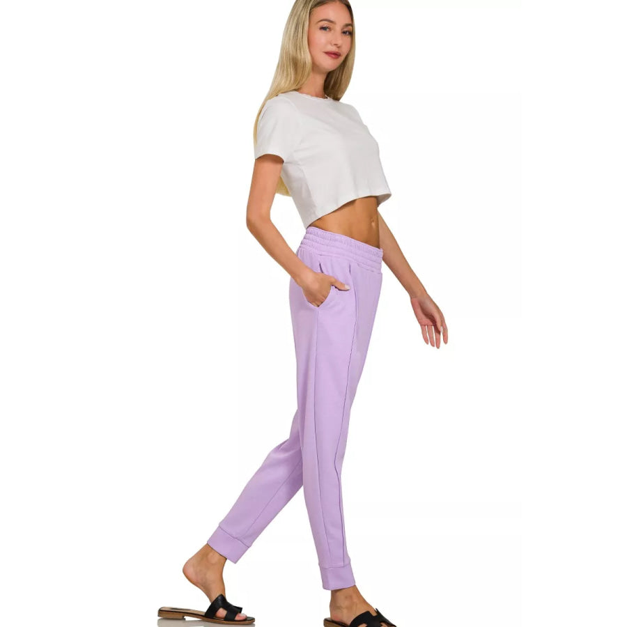 This Zenana Scuba Mock Neck Sweatshirt and Joggers Set offers ultimate comfort and style. Made from soft scuba knit fabric, this set is perfect for lounging at home or running errands. The sweatshirt features a mock neck design, while the joggers have an elastic waistband and side pockets for added convenience. The relaxed fit ensures all-day comfort. Available in a range of colors, this set is a versatile addition to any wardrobe. Material: Scuba Knit. Selling points: Comfort, style, versatility.