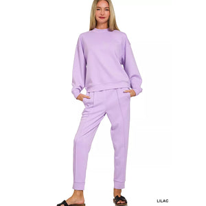 Zenana Scuba Mock Neck Sweatshirt and Joggers Set