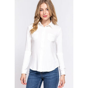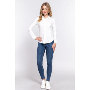 ACTIVE BASIC Long Sleeve Front Pocket DTY Brushed Shirt