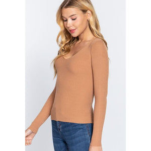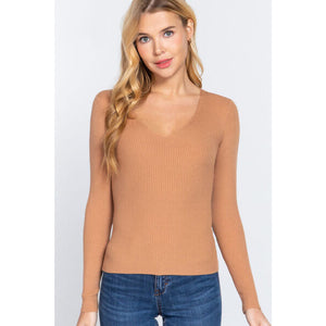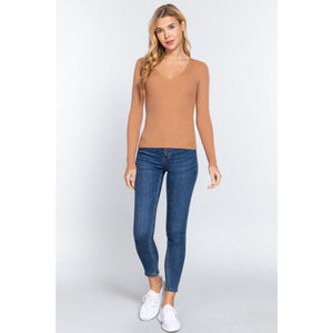 ACTIVE BASIC V-Neck Fitted Viscose Rib Knit Top