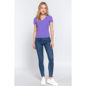 ACTIVE BASIC V-Neck Ribbed Short Sleeve Knit T-Shirt