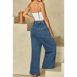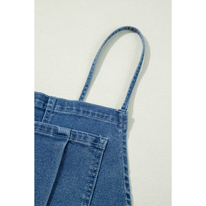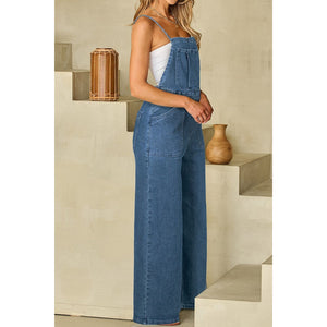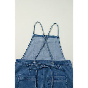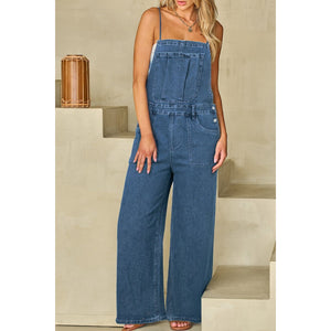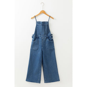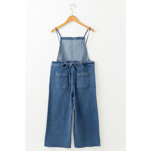 Adjustable Tie Straps Wide Leg Denim Overalls