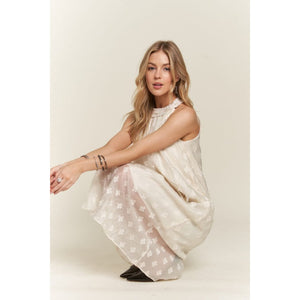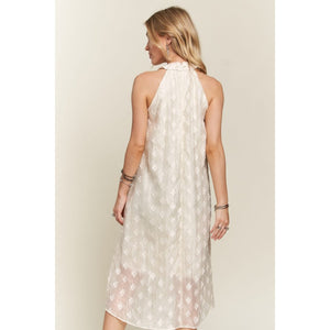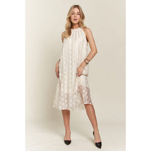 An Applique Pearl Detail Grecian Neck Midi Dress is a luxurious and elegant garment suitable for formal occasions. The Grecian neckline gives a classic and sophisticated appearance, while the applique and pearl detailing add a touch of glamour and texture to the dress. The midi length provides a refined and polished look, making it ideal for events such as weddings, galas, or upscale parties. Pair this dress with heels and subtle jewelry to create a stunning and sophisticated ensemble that is sure to make a statement.