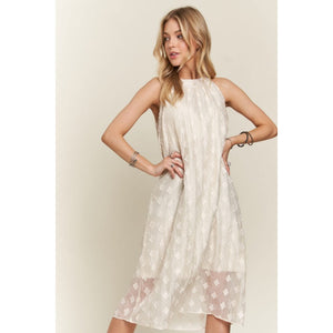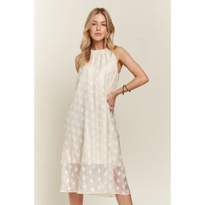 ADORA Applique Pearl Detail Grecian Neck Midi Dress