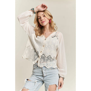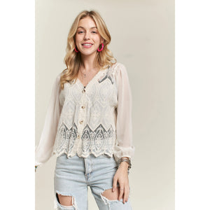 ADORA Button Down Embroidered Blouse