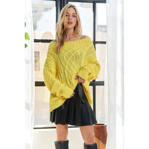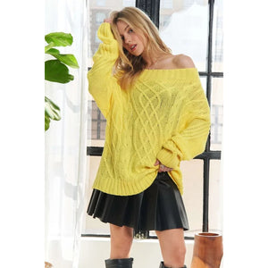The Cable Knit Off Shoulder Sweater is a cozy and stylish piece featuring a classic cable knit pattern and an off-the-shoulder design. This sweater offers a trendy and feminine look while keeping you warm and comfortable. Perfect for layering or wearing on its own, this sweater is a versatile addition to your wardrobe for cooler weather.