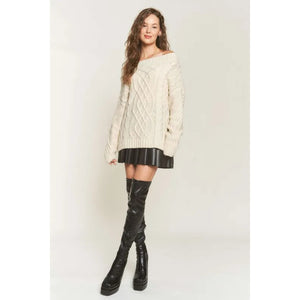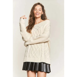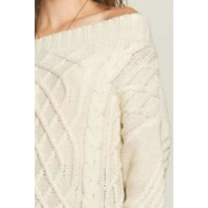 The Cable Knit Off Shoulder Sweater is a cozy and stylish piece featuring a classic cable knit pattern and an off-the-shoulder design. This sweater offers a trendy and feminine look while keeping you warm and comfortable. Perfect for layering or wearing on its own, this sweater is a versatile addition to your wardrobe for cooler weather.