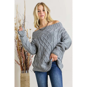 The Cable Knit Off Shoulder Sweater is a cozy and stylish piece featuring a classic cable knit pattern and an off-the-shoulder design. This sweater offers a trendy and feminine look while keeping you warm and comfortable. Perfect for layering or wearing on its own, this sweater is a versatile addition to your wardrobe for cooler weather.