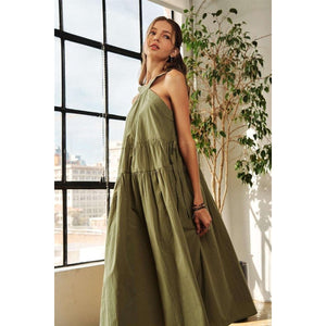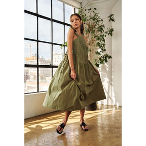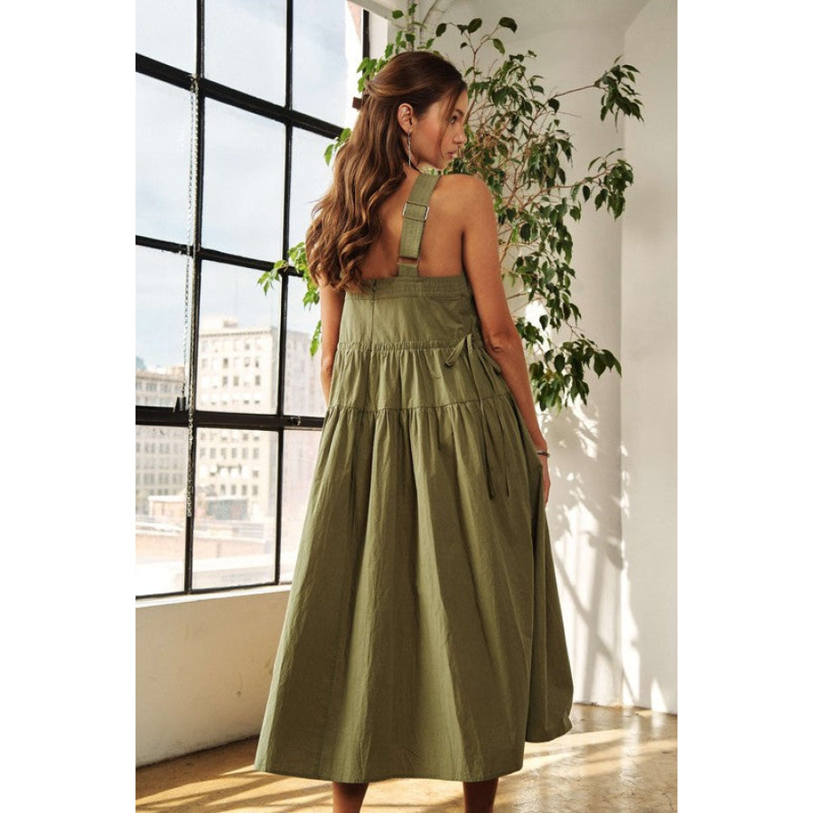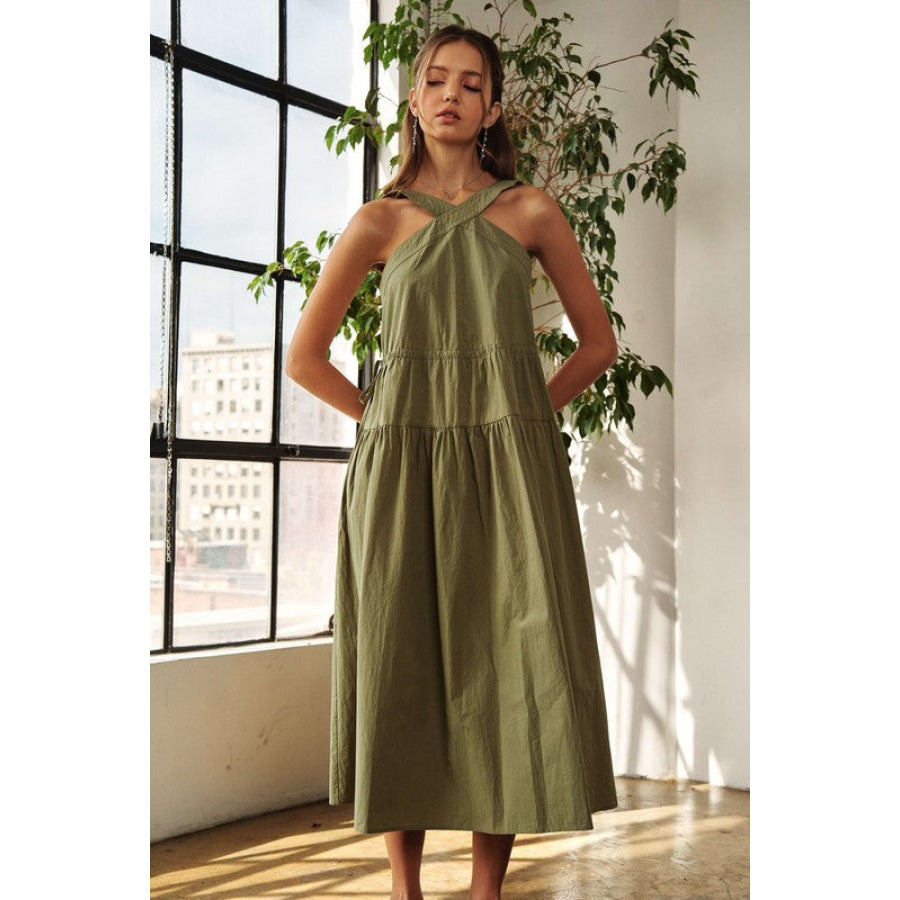 ADORA Crisscross Wide Strap Drawstring Detail Midi Dress