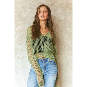 ADORA Crochet Long Sleeve Knit Cover Up with Big Pocket