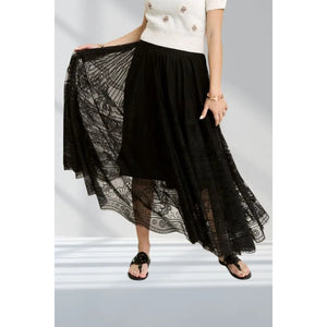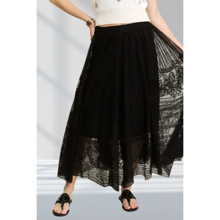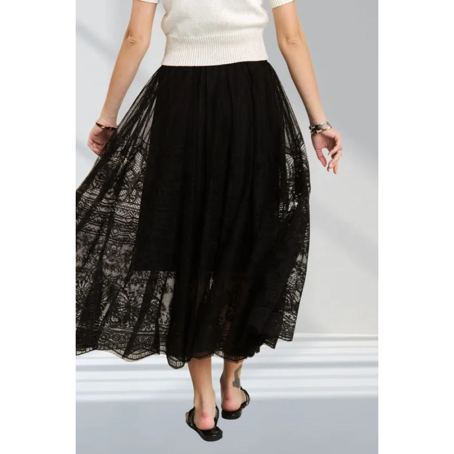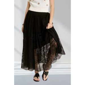 ADORA Elastic Waist Raw Hem Lace Maxi Skirt