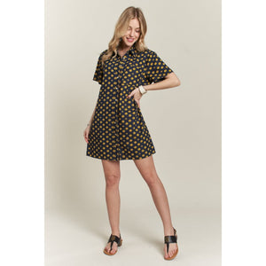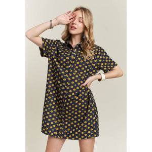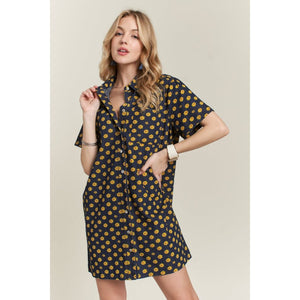 The Floral Button-Up Mini Denim Dress is a playful blend of charm and casual style. Featuring a delightful floral print, this dress adds a pop of fun to your wardrobe. The button-up front and shirt collar give it a classic touch, while the mini length keeps it flirty and modern. Crafted from soft denim, it offers both comfort and durability. Pair it with sneakers for a casual day out or dress it up with heels for a brunch date. This versatile piece is perfect for embracing effortless style.