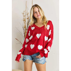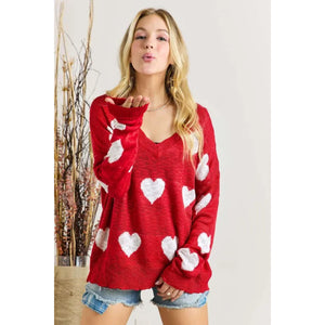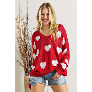 ADORA Full Size Heart V-Neck Knit Top Plus Size