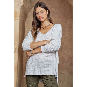 The High-Low Side Slit V-Neck Sweater is a stylish and versatile piece for your wardrobe. With its high-low hem and side slits, this sweater offers a modern and chic look. The V-neck adds a flattering touch to the neckline, making it a great option for layering over camisoles or wearing on its own. This sweater can be dressed up or down, making it a versatile choice for various occasions.