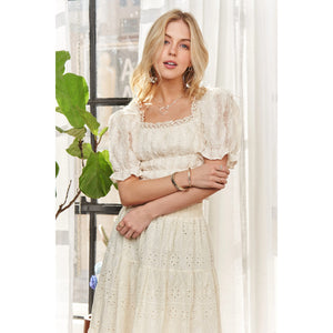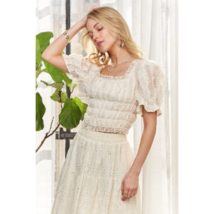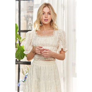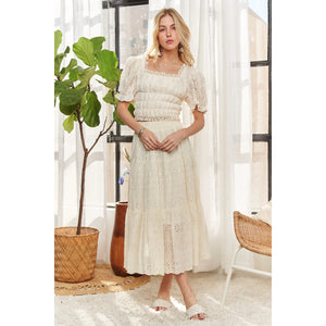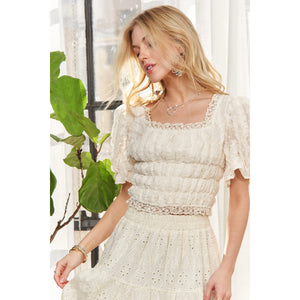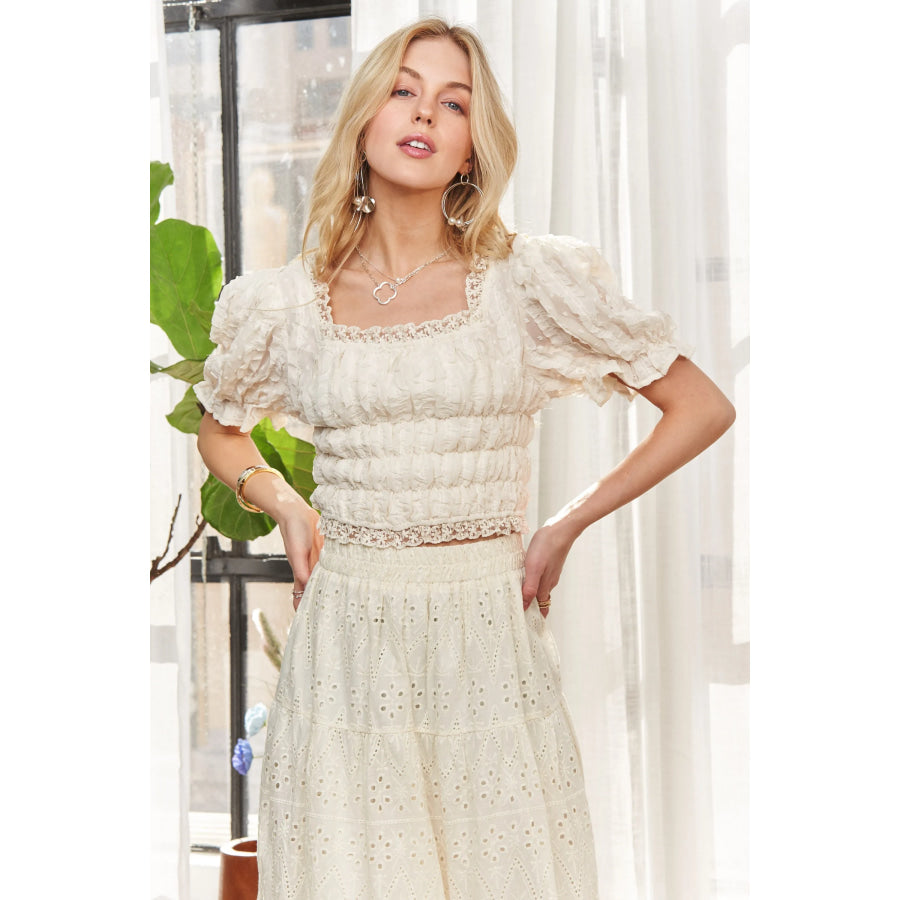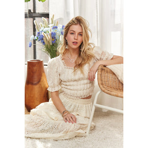 The Lace Smocked Waist Peasant Top is a romantic and bohemian-inspired piece featuring delicate lace detailing and a flattering smocked waist. This top exudes a feminine and effortless aesthetic, perfect for adding a touch of charm to your outfit. The smocked waist creates a flattering silhouette while the lace adds a hint of elegance. Pair this peasant top with jeans or a flowy skirt for a chic and relaxed look. Embrace your free-spirited style with this lovely Lace Smocked Waist Peasant Top.