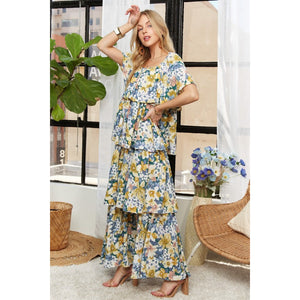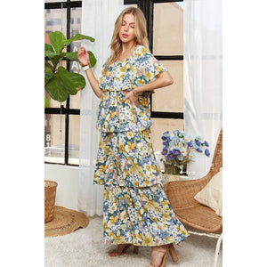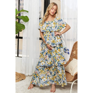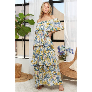 ADORA Layered Floral Off-Shoulder Short Sleeve Maxi Dress