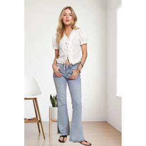 This refer to a blouse inspired by ballet aesthetics, featuring graceful details, delicate draping, and feminine touches reminiscent of ballet costumes. It is likely to exude elegance and sophistication, making it a stylish choice for various occasions.