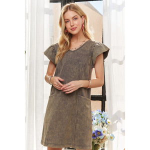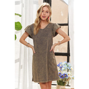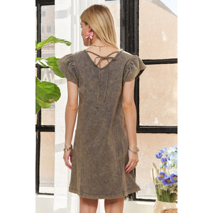 ADORA Mineral Washed V-Neck Ruffled Cap Sleeve Dress