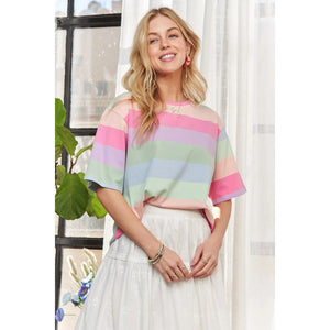 The Multi Color Stripe Casual Top is a fun and colorful addition to your everyday wardrobe. With its striped design featuring multiple colors, this top offers a playful and vibrant look. The casual style makes it perfect for pairing with jeans, shorts, or leggings for a relaxed and laid-back outfit. Whether you're running errands, meeting up with friends, or just enjoying a leisurely day, this top will add a cheerful and stylish touch to your ensemble.