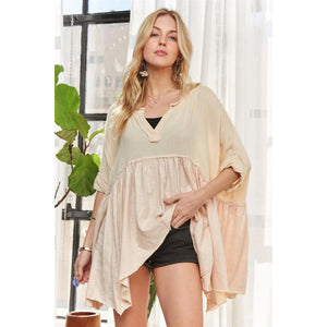 The oversized mineral washed flare top is a bohemian-inspired and relaxed addition to your closet. The mineral wash gives the top a vintage and edgy look, perfect for a casual and laid-back style. The oversized fit provides comfort and a cool, effortless vibe. The flare design adds a touch of whimsy and movement to the top, making it a fun and trendy choice. Elevate your look with the oversized mineral washed flare top for a chic and stylish ensemble.