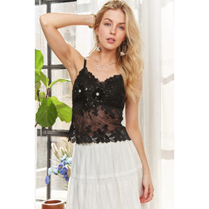 ADORA Rhinestone Accent Lace Bralette Top