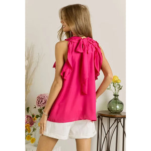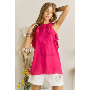 The ruffled Grecian neck top is a chic and sophisticated piece featuring elegant ruffled detailing at the neckline, reminiscent of Grecian draping. This top offers a flattering and stylish silhouette that can be dressed up or down. Perfect for adding a touch of refinement to your outfit, the Grecian neck top is a versatile and fashionable choice for various occasions, from work to special events, where you want to make a classy statement.