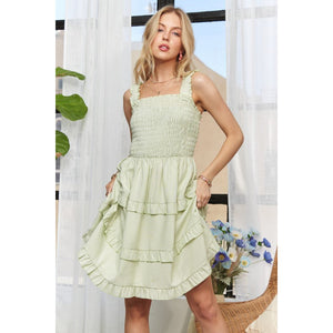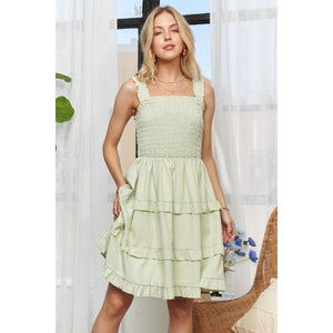 ADORA Smocked Ruffled Wide Strap Mini Dress