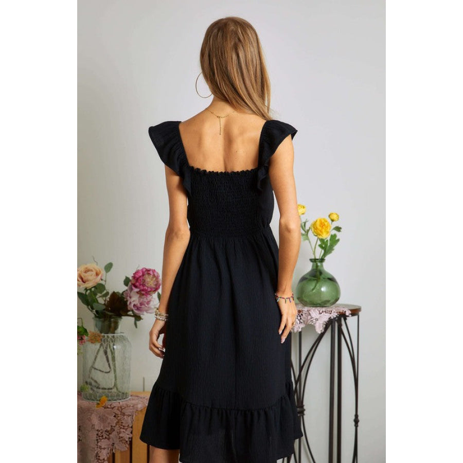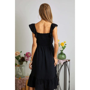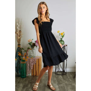 The Smocked Square Neck Ruffled Cap Sleeve Dress is a charming and feminine piece perfect for any occasion. With a square neckline adorned with smocked detailing, this dress offers a flattering and romantic touch. The delicate ruffled cap sleeves add a sweet and playful element to the overall design. This dress is versatile and can be dressed up or down, making it a versatile addition to your wardrobe. Whether you're attending a special event or simply want to add a touch of elegance to your everyday look, this dress is a lovely choice.