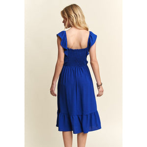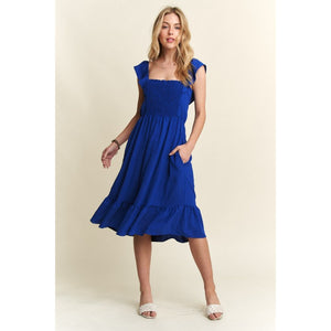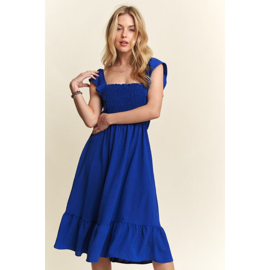 The Smocked Square Neck Ruffled Cap Sleeve Dress is a charming and feminine piece perfect for any occasion. With a square neckline adorned with smocked detailing, this dress offers a flattering and romantic touch. The delicate ruffled cap sleeves add a sweet and playful element to the overall design. This dress is versatile and can be dressed up or down, making it a versatile addition to your wardrobe. Whether you're attending a special event or simply want to add a touch of elegance to your everyday look, this dress is a lovely choice.