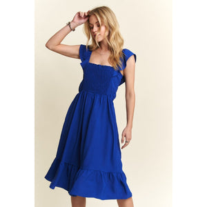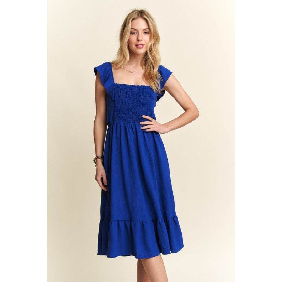 ADORA Smocked Square Neck Ruffled Cap Sleeve Dress