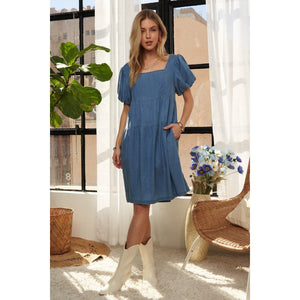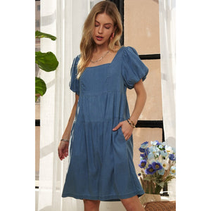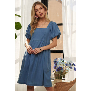 The Square Neck Puff Sleeve Denim Dress combines a trendy square neckline with stylish puff sleeves for a fashionable look. Made from denim fabric, this dress offers a unique twist on a classic material. The square neck adds a modern touch, while the puff sleeves bring a feminine and playful element to the outfit. Embrace your style with this chic denim dress that effortlessly merges casual and trendy vibes.