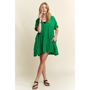 The Tiered Notched Short Sleeve Dress is a versatile and chic piece for any occasion. Its unique tiered design and notched neckline add a fashionable touch to a classic silhouette. With short sleeves, this dress offers comfort and style in one elegant package. Elevate your wardrobe with this must-have dress!