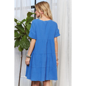 The Tiered Notched Short Sleeve Dress is a versatile and chic piece for any occasion. Its unique tiered design and notched neckline add a fashionable touch to a classic silhouette. With short sleeves, this dress offers comfort and style in one elegant package. Elevate your wardrobe with this must-have dress!
