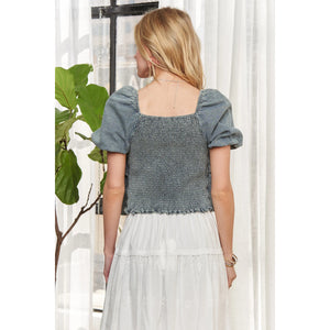 The Washed Denim Layered Ruffle Blouse elevates the classic denim look with a stylish and feminine touch of layered ruffles. The washed denim fabric offers a casual yet chic vibe, perfect for a trendy and versatile outfit. Pair this blouse with jeans for a double denim look or with a skirt for a playful and fashion-forward ensemble.