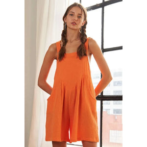 The Wide Leg Overall Romper is a trendy and versatile piece for your wardrobe. The wide-leg silhouette offers a relaxed and chic look. The overall style gives a playful and youthful vibe to the romper. Perfect for a casual day out or a weekend getaway, this romper can be dressed up or down with ease. Pair it with a simple tee or crop top for a stylish and effortless outfit!