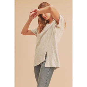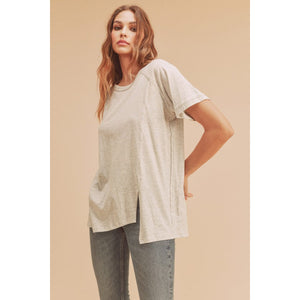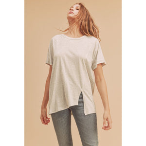Aemi + Co Asymmetrical Front Slit Round Neck Raglan Sleeve T-Shirt