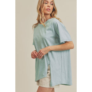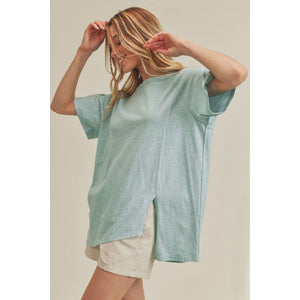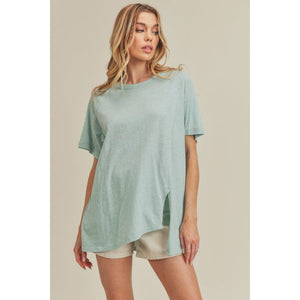 Aemi + Co Asymmetrical Front Slit Round Neck Raglan Sleeve T-Shirt