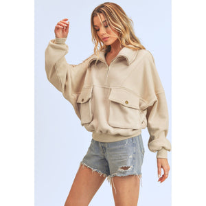 Aemi + Co Exposed Seam Half Zip Sweatshirt with Pockets