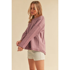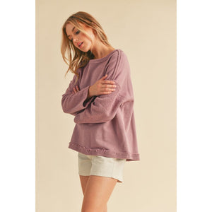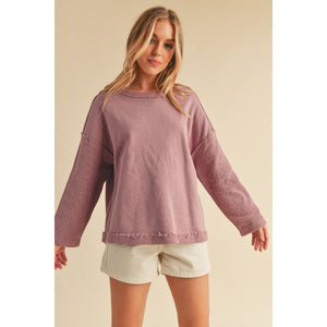 Aemi + Co Frayed Edge Round Neck Sweatshirt