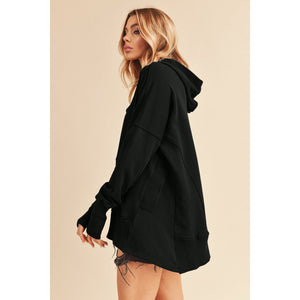 Aemi+Co Half Snap Dropped Shoulder Hoodie