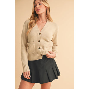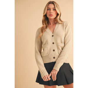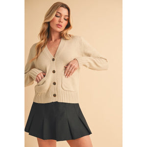 Aemi + Co Ribbed Hem Button Down V-Neck Cardigan