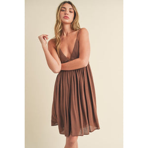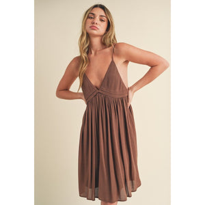 Aemi + Co Ruched Plunge Mini Cami Dress