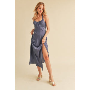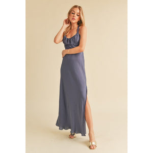 Aemi + Co Ruched Side Slit Cutout Back Maxi Cami Dress