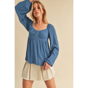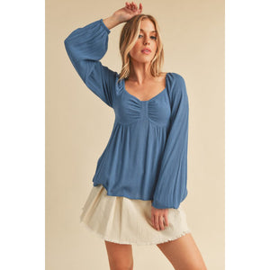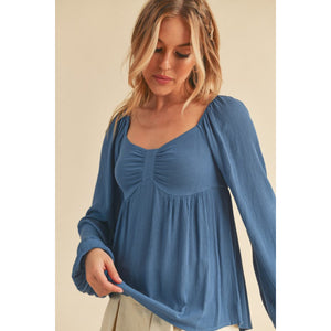 Aemi + Co Ruched Sweetheart Neck Balloon Sleeve Blouse