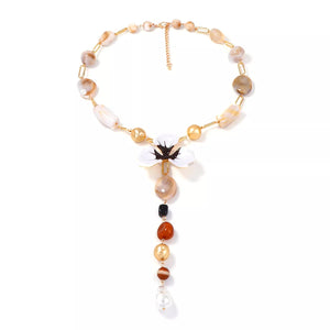 Alloy Dripping Oil Flower Resin Y-Shaped Necklace